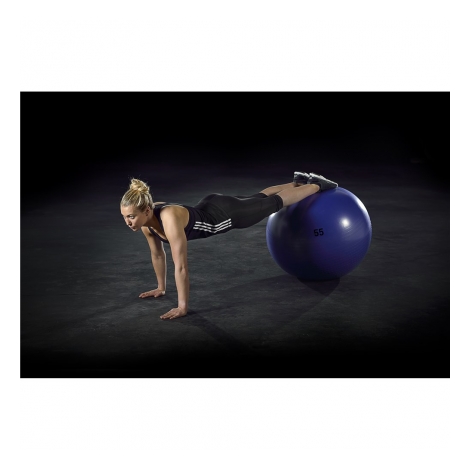 Adidas ADBL-13245PL (55 см) за рахунок наявності чудових характеристик якісного і продуманого дизайну, а також оскільки продукт був виконаний на основі зносостійкого матеріалу, еластичного і надійного (полімер/пропілен), він здатний запропонувати користувачеві довгий експлуатаційний період, безпека в процесі застосування і виконання таких вправ, які недоступні для виконання на жодному іншому тренажері. Зокрема, фитнесбол чудово відновлює м'язи спини, дозволяючи користувачеві отримати високий тонус і підтягнуту фігуру. Даний виріб призначений для використання дорослою групою користувачів, реалізований в синьому кольорі і має діаметр окружності 55 див. Допускається робоче навантаження вагою не більше 110 кг.