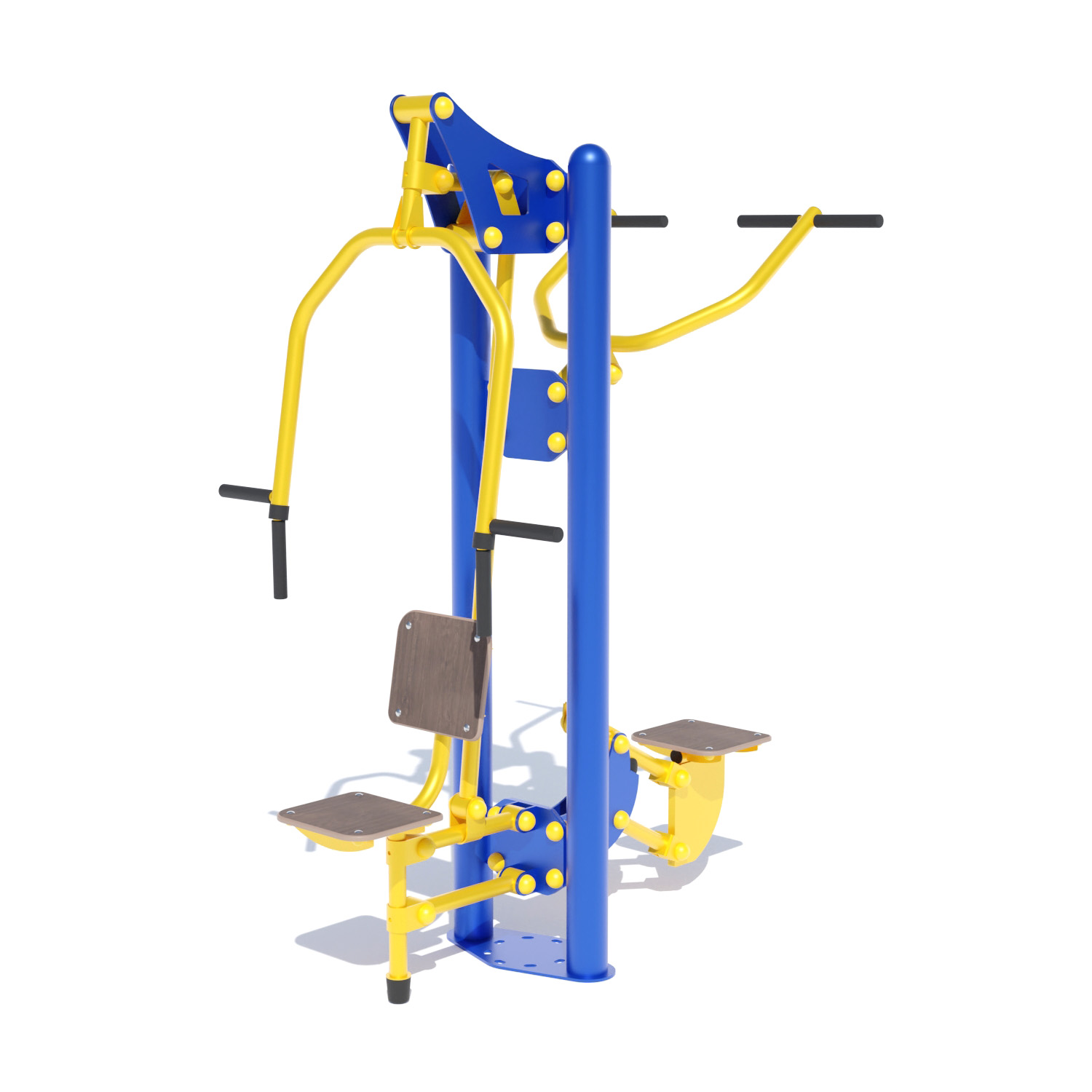 Тренажер BruStyle Тяга сверху Жим от груди SG123 – это уникальный уличный комбинированный тренажер, позволяющий осуществить сразу несколько целей. Фактически, он представляет собой два тренажера, объединенных в одну конструкторскую единицу.