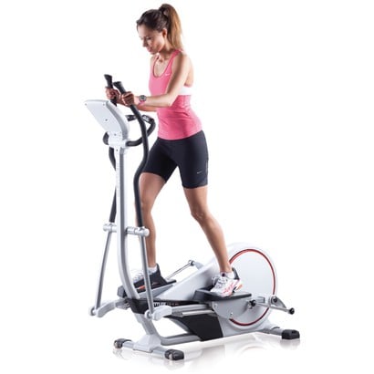 Эллиптический тренажер с магнитной системой сопротивления и электронной регулировкой уровня нагрузки (15 уровней). Длина шага – 390 мм. Тренировочный компьютер с 10 встроенными программами. Целевые - прямой и обратный отсчет заданных пользователем целевых значений по времени, дистанции или калориям. Предустановленные – имитация езды по пересеченной местности. Пульсозависимые – нагрузка меняется в зависимости от показаний сердцебиения. - Отображение 8 рабочих параметров. - Контроль верхнего значения пульса. - Функция «Фитнес-тест», позволяющая оценить способность организма восстанавливаться после физической нагрузки. - Регулировка наклона консоли. - Регулировка положения платформ. - Компенсаторы неровности пола. - Транспортировочные ролики.