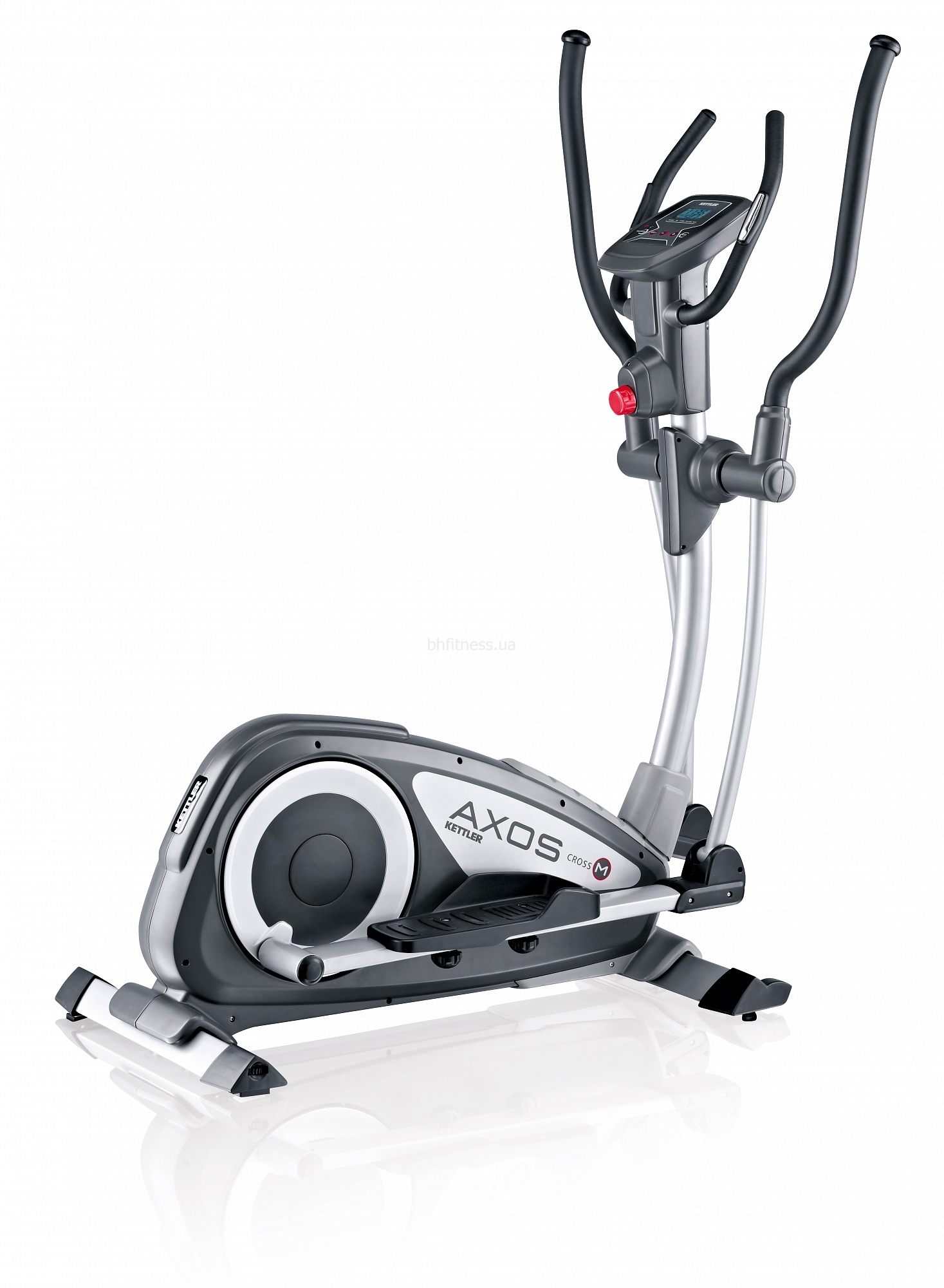 Орбітрек Kettler Cross M 7647-900 має 8 рівнями магнітної навантаження (регулювання механічна). Довжина кроку становить 32 див. Маса маховика становить 12 кг. Педалі мають можливість регулювання під потреби користувача. Змінивши кут нахилу педалей, ви приспосабливаете амплітуду ваших рухів під імітацію лижного бігу або підйому по сходах. Поручні мають датчики вимірювання пульсу, який виводиться на екран дисплея. Крім пульсу на дисплеї відображаються витрачені калорії, виконана дистанція, швидкість (педальная і бігова), і час тренування. Якісний німецький тренажер зроблений з металу, має гумові елементи механізму та пластикові упори.