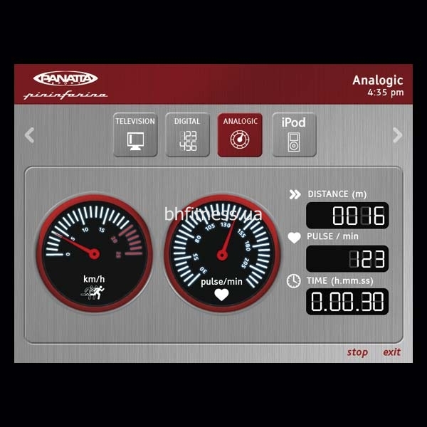 Cкорость, время, обороты/мин, дистанция, калории, пульс, Вт, профиль тренировки