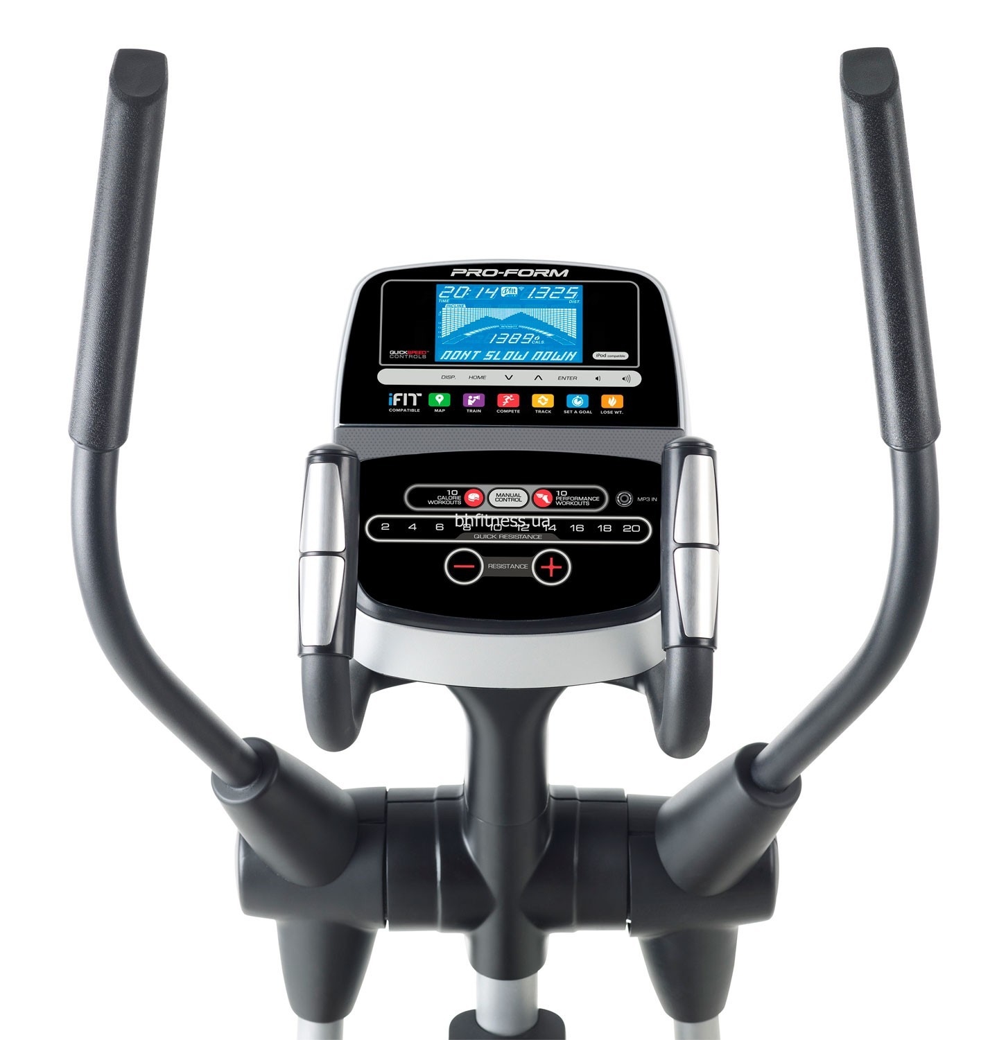 Орбітрек 900 ZLE від ProForm, без праці встановлюється у Вас вдома, призначений для проведення інтенсивних кардіотренувань, що сприяють зниженню ваги, поліпшенню роботи серця, органів дихання, придбання струнких ніг, підтягнутих стегон і сідниць. Легко складається, витримує 135 кг навантаження тренажер, оснащений 10 кг маховиком і електромагнітної SMR™ системою навантаження. Наявність 18 рівнів навантаження, 9 інтерактивних програм та 9 програм , спрямованих на інтенсивне зниження ваги і сумісність з iFit® SD Card, надає можливість задати необхідну програму тренувань, найбільш відповідну потребам користувачів. На орбітреку 900 ZLE відстежити стан пульсу і хід занять можна за допомогою встановленого монітор серцевого ритму CardioGrip™ і досить простий в управлінні консолі, оснащеної LCD монітором. Зручні рукоятки, широкі педалі зі спеціальним покриттям, роз'єм для підключення iPod®, вбудовані динаміки, підставка для пляшки з водою забезпечать повний комфорт спортсменів під час тренувань.