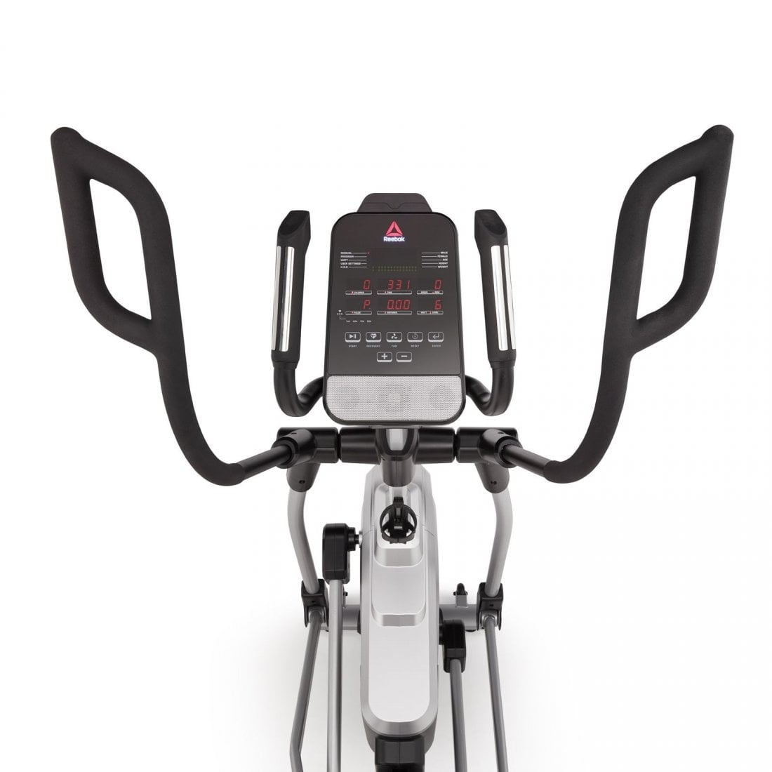 Все управление орбитреком Reebok SL8.0 RVSL-10811 осуществляется сенсорными кнопками, которые расположены на компьютерной консоли. Там же расположено несколько цифровых дисплеем с красной подсветкой, отображающих всю необходимую информацию, такую как, текущая скорость, уровень пульса, время, уровень нагрузки и другую информацию. Для удобства имеется 20 встроенных тренировочных программ с возможностью ручного программирования. А для меломанов предусмотрен вход AUX для подключения вашего гаджета (МР3 плеера, планшета, смартфона) и пара встроенных стереодинамиков. Данная модель поддерживает Bluetooth и приложение Reebok Fitness APP, а также детализацию вашего маршрута через Google Street View. Для удобства перемещения тренажера, орбитрек оснащен транспортировочными прорезиненными роликами.