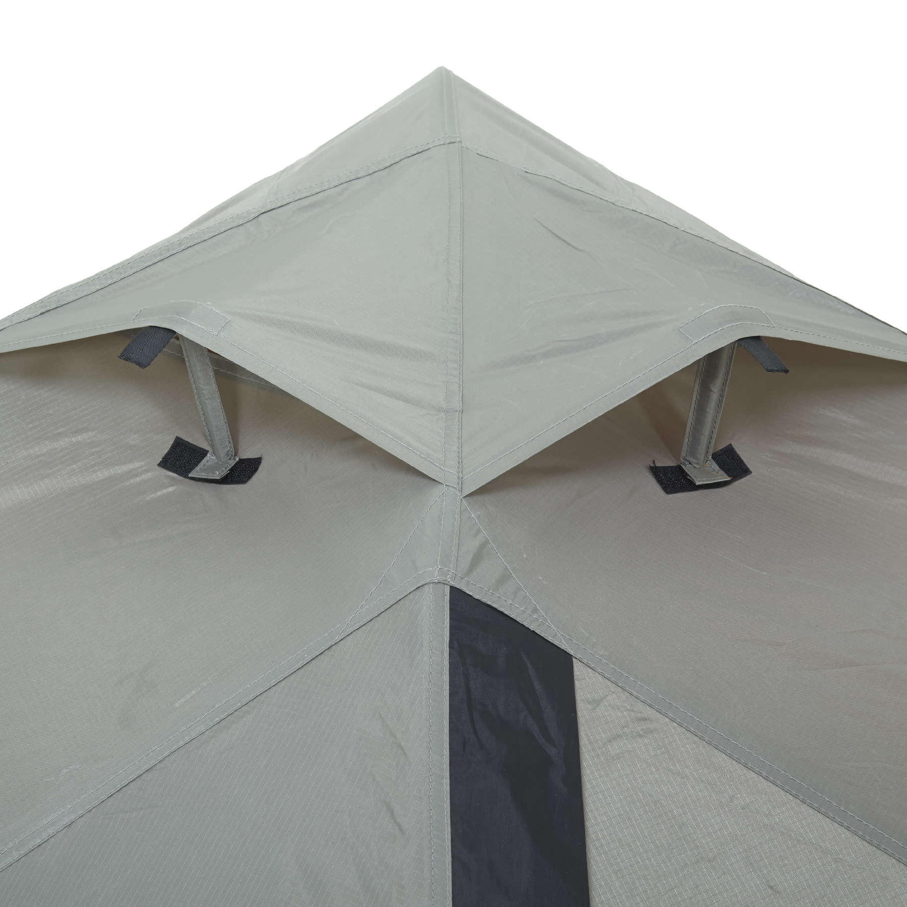 - Намет має 4 великих вентиляційних клапана APEX, розташованих у верхній частині тамбурів. Таким чином забезпечується правильна вентиляція внутрішнього намету і зовнішнього тенту, запобігається утворення конденсату і регулюється внутрішня температура. Клапана фіксуються жорстким фіксатором на застібці Velcro і не створюють небажаного шуму навіть під поривчастим вітром. Частина внутрішнього намету виконана з сітки NoSeeUm, що також поліпшує провітрювання.