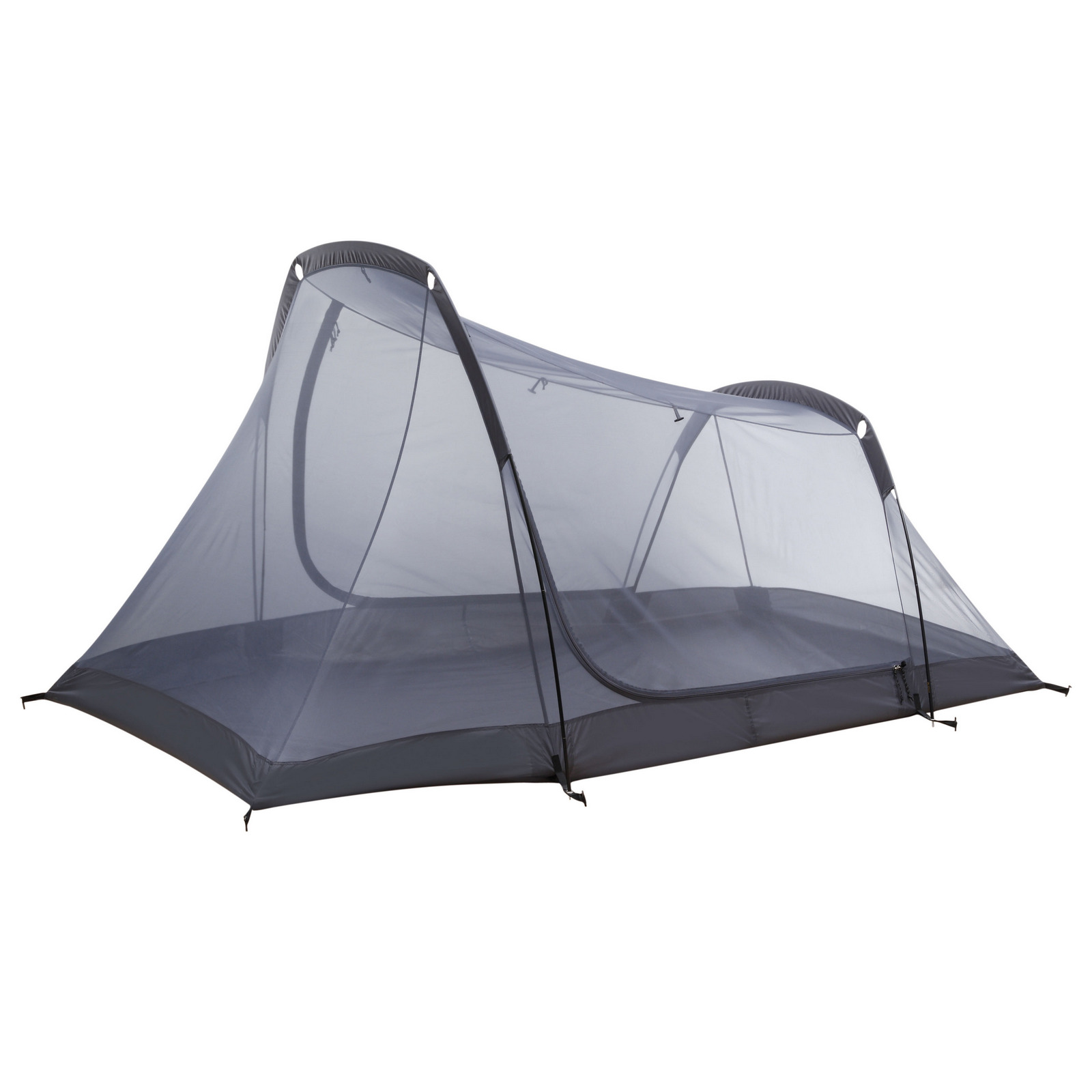 2х-слойная конструкция состоит из внешнего тента и внутренней палатки из москитной сетки, которые можно использовать независимо друг от друга. Пол изготовлен из полиэстера 70D Ripstop PU, рассчитанного на 8000 мм осадков. Продуманная система вентиляции обеспечит хорошее снабжение палатки воздухом и при этом убережет от конденсата. В данной 3х местной палатке с 2 входами предусмотрены 2 тамбура для снаряжения, таким образом, в палатке могут удобно разместиться 3 человека. Дополнительно предусмотрен крюк для фонаря и вместительный отсек для аксессуаров.