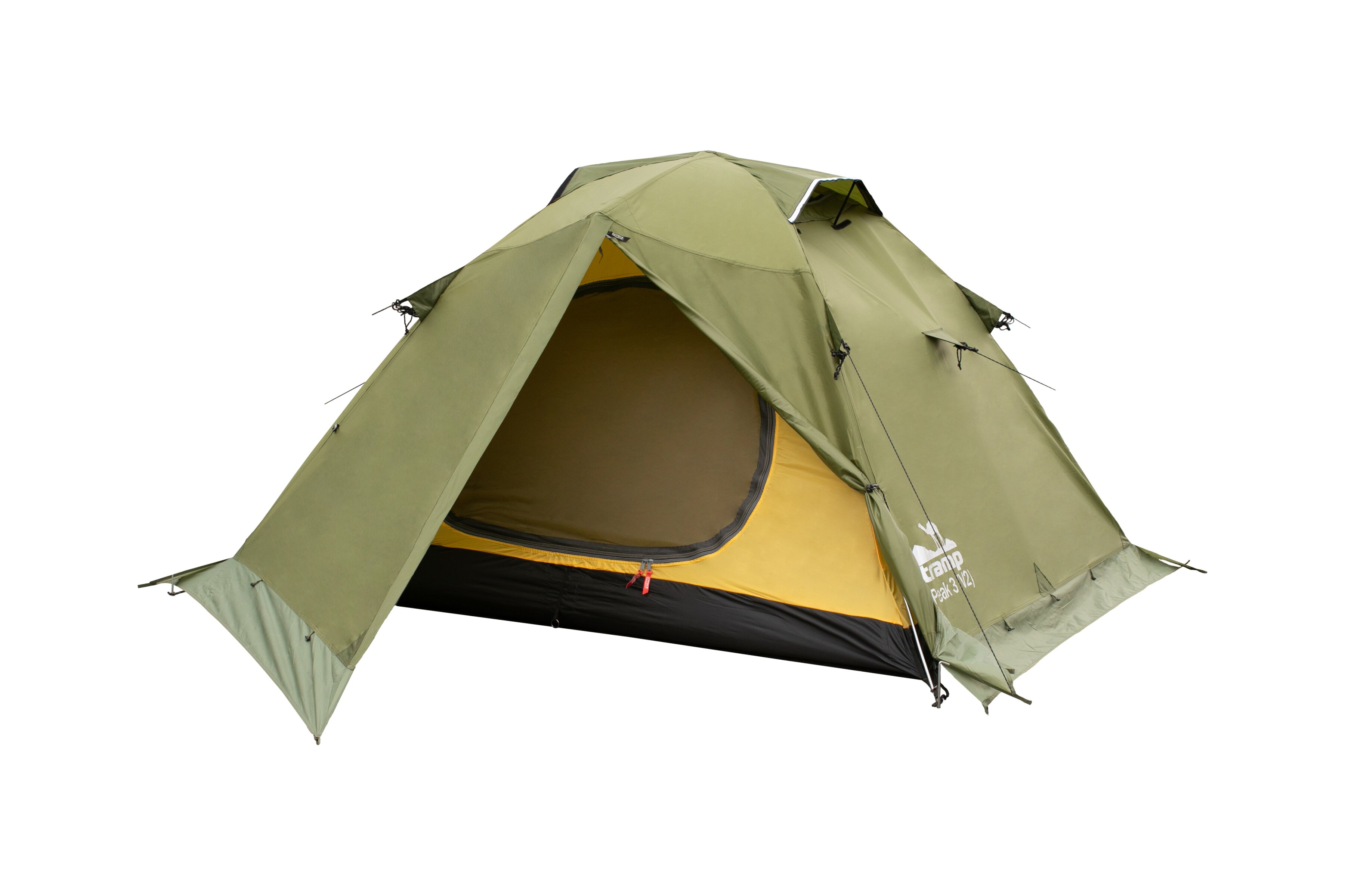Трехместная экспедиционная палатка Tramp Peak 3 (V2) с двумя входами , двумя тамбурами увеличеного объема и площади.