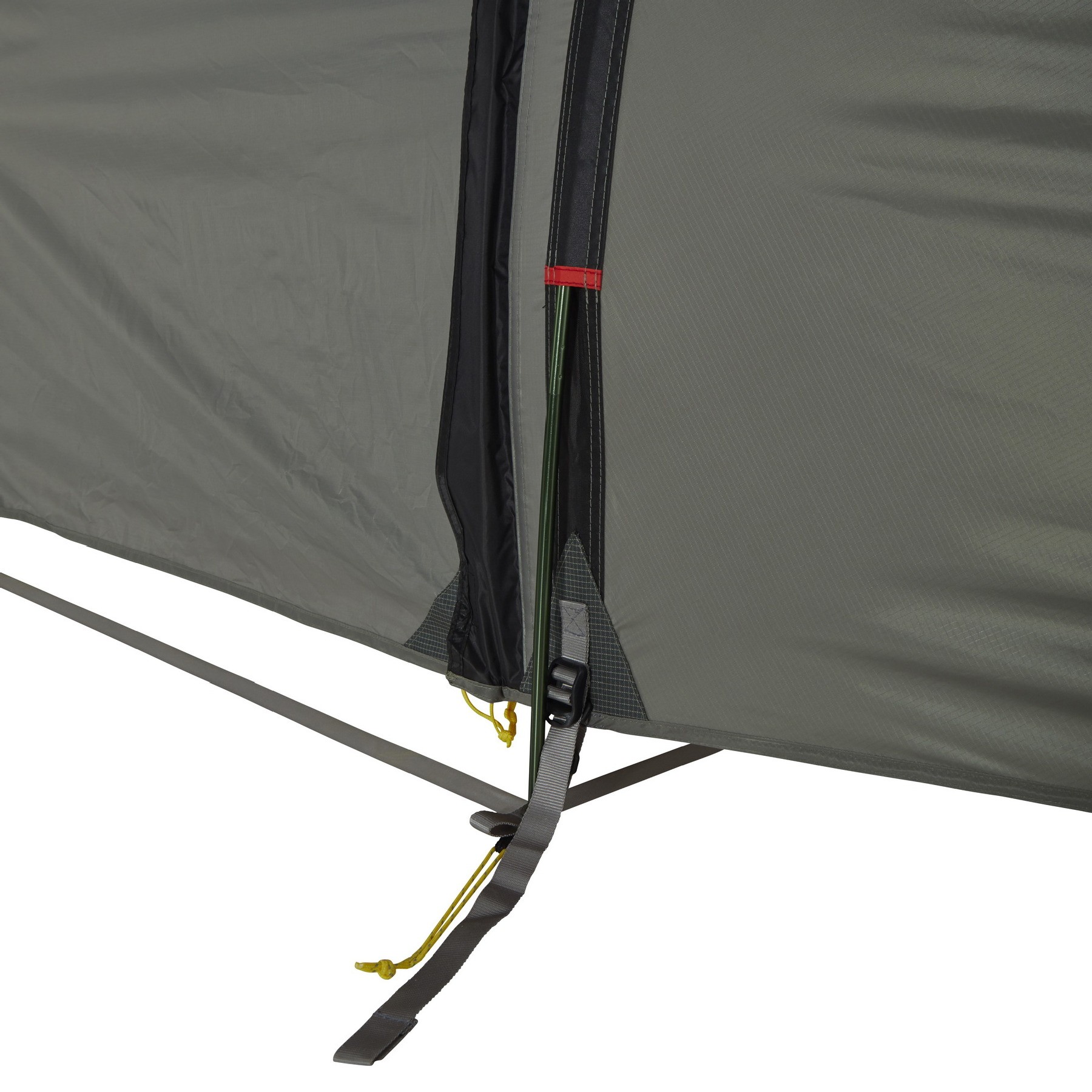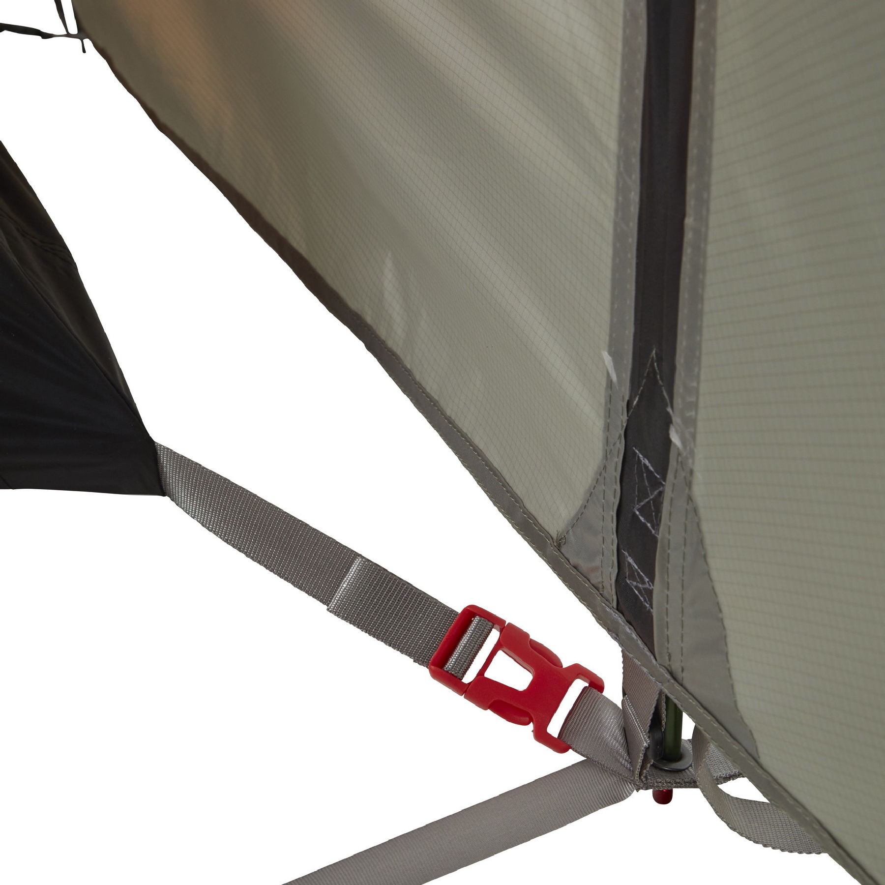 - Зовнішній тент має спеціальний стягуючий ремінь знизу, що дозволяє зафіксувати периметр намету і збільшити його стійкість