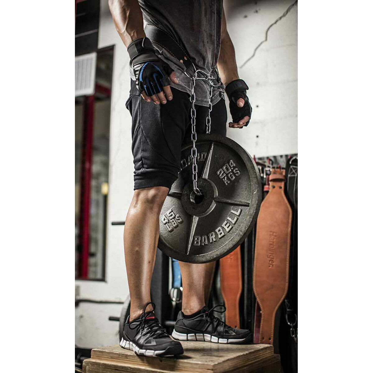 Пасок шкіряний для обтяжень Harbinger Leather Dip Belt 28800 виділяється високоякісної основою і достатньою довжиною ланцюга в 76,2 см, що дозволяє розмістити декілька пластин. Також особливістю даної моделі є те, що її конструкція забезпечена міцними сталевими прокладками, що збільшують характеристики довговічності виробу, і спеціальною системою затиску швидкості для сталевий ланцюга.