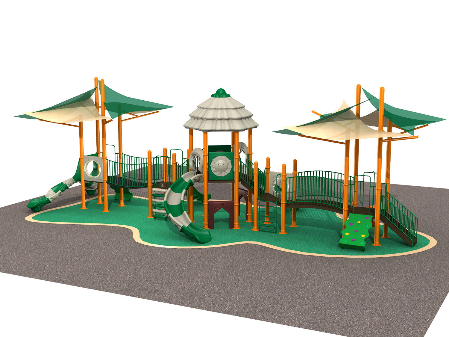 Мы рекомендуем обеспечить буферную зону шириной 1,5 м по всему периметру конструкции детской площадки для обеспечения максимального комфорта и безопасности детей, которые играют на такой площадке.