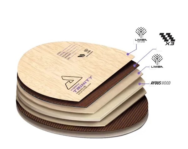 Секрет ефективності цієї основи — у революційній суперкомпозитній тканині X3, яка поєднує волокна PBO-c та ARY-c у багатовимірній структурі. Така технологія забезпечує великий sweet spot, стабільну траєкторію та неймовірний ефект катапульти. Зовнішній шар з Limba додає м’якості, контролю та ідеального відчуття для сучасного топспіну.