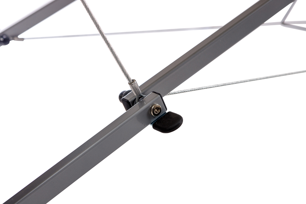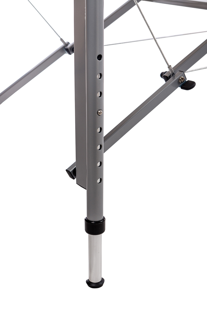 - Міцний, але легкий каркас. Поєднання алюмінієвих ніжок і надійної основи гарантує стійкість та водночас полегшує транспортування столу.
