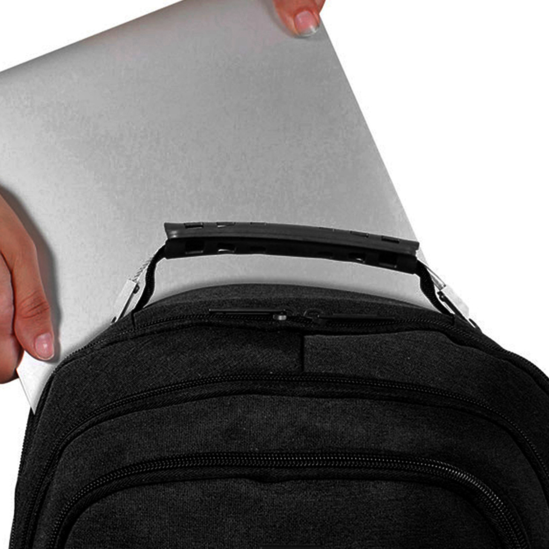 - Поперечний широкий отвір на спинці для фіксації рюкзака на висувних телескопічних ручках валіз та сумок під час поїздок;