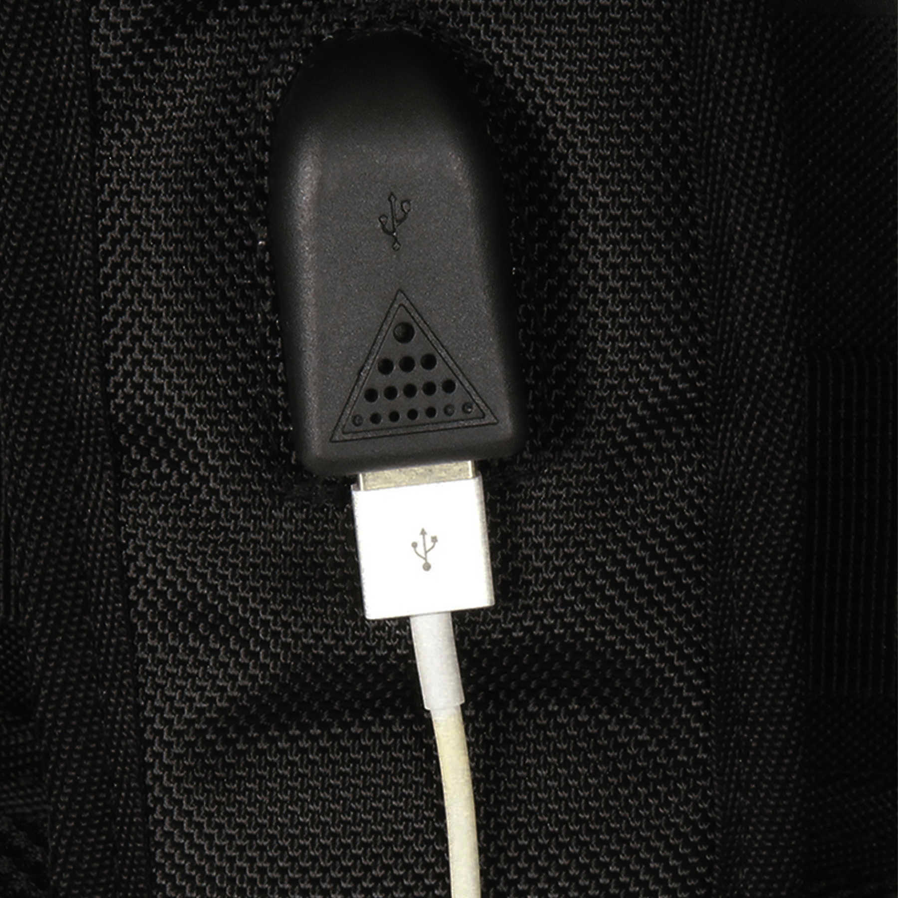 - USB-вихід на шлейці рюкзака для заряджання пристроїв. Внутрішній шнур довжиною 40 см з USB-роз'ємом для підключення до ноутбука або повербанку;