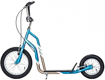 Самокат Yedoo City SkyBlue/Gold - оригінальне транспортний засіб, призначення якого полягає в тому, щоб користувач (від 12 років і старше з ростом від 145 см) міг отримати все необхідне для індивідуального катання, яке принесе задоволення, адже всі елементи конструкції даного самоката відповідають високим вимогам комфорту та безпеки водія. Дані характеристики стали можливими завдяки впровадженню сучасних технічних рішень, що представлені надійними елементами конструкції. В основі лежить міцна рама з сталевого сплаву Hi-Ten, яка має чудову геометрію, а її фарбування виконується стійким до зносу порошковим покриттям. Інші технічні вузли і елементи конструкції також можуть похвалитися надійністю і довговічністю, наприклад, контроль за рухом і впевненість дарують V-Brake гальма від C-Star.