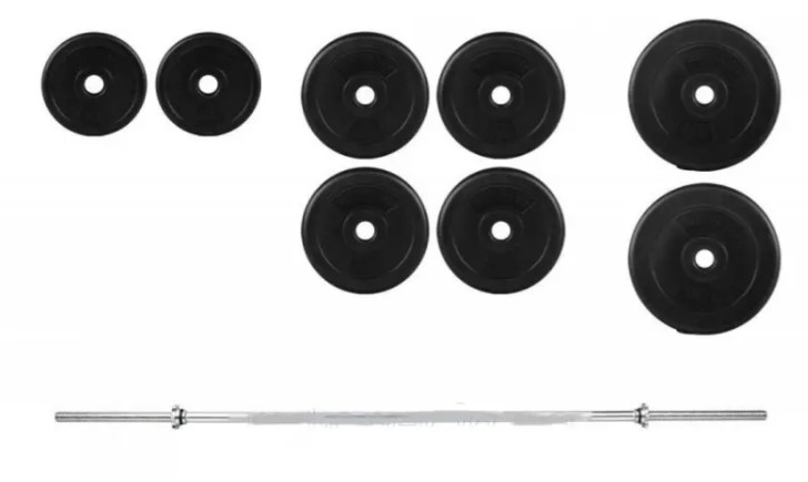 Представляємо набір навантажень з загальною вагою 30 кг. За допомогою цього набору Ви зможете повноцінно займатися зі штангою і гантелями як і в спортзалі так і в домашніх умовах. Диски підходять до прямого грифу, w-подібного і до гантельних грифіф тому набір вважається універсальним. Ви зможете чергувати заняття зі штангою і гантелями,тим самим рівномірно опрацьовувати різні групи м'язів.