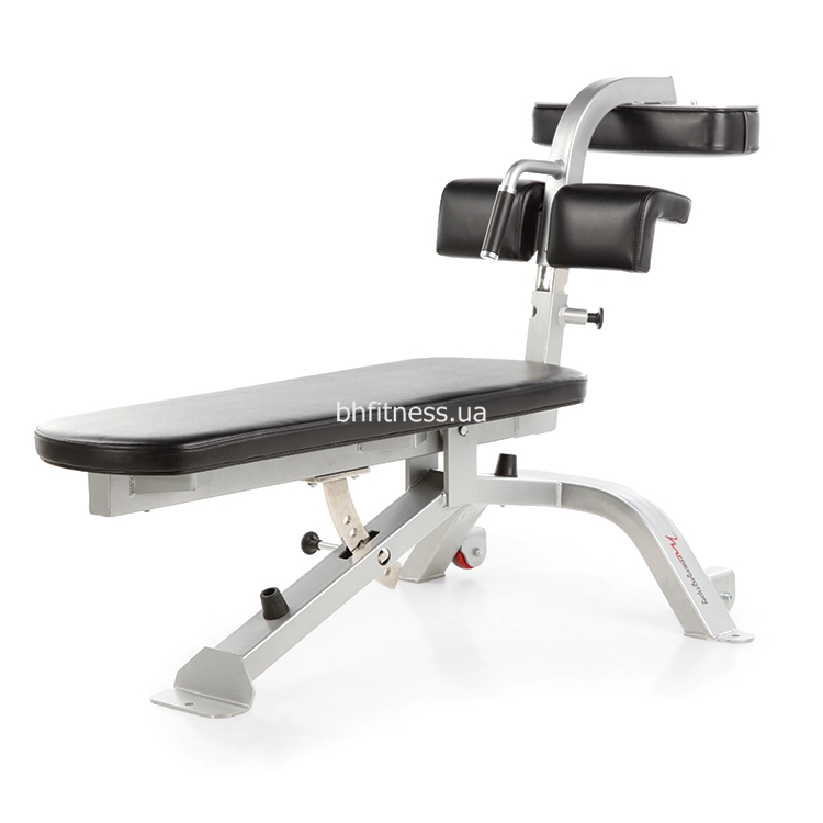 Римський стілець F213 – це тренажер, який сприяє підготовці спортсменів у різних видах спорту. Призначений для тренувань м'язів черевного преса. Присутня можливість регулювати валик для ніг, що робить можливість занять на тренажері доступною для людей будь-якого зростання. В наявності є амортизуючі підп'ятники, які не потребують кріплення до підлоги. Конструкція тренажера зроблена з нержавіючої сталі і посилена. Сидіння виконано з багатошарової фанери. Всі комплектуючі тренажера зносостійкі.