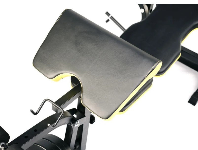 Лавка оснащена регульованою партою Скотта, яка забезпечує точне ізольоване навантаження на біцепс:
