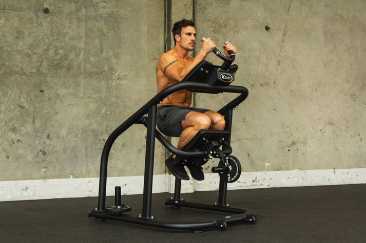 М'який підколінний упор може вільно обертатися. Просто розверніть коліна вбік під час підйому, щоб акцентовано опрацювати косі м'язи живота. Все це без необхідності складних налаштувань тренажера.