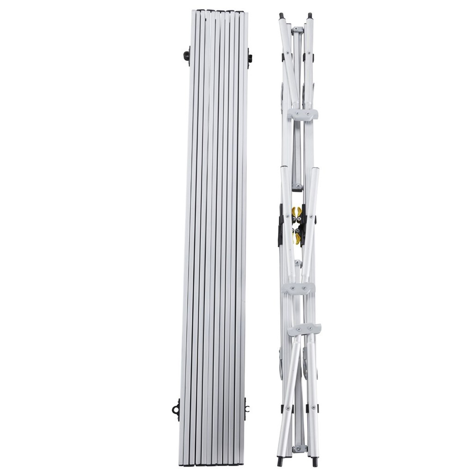 Стільниця має достатні розміри, щоб за столом комфортно розмістилися 6 людей. У складеному вигляді стіл компактно розміщується в чохлі. Алюмінієва поверхня стільниці легко чиститься, і є максимально гігієнічною, оскільки алюміній не формує середовище для розмноження мікробів.