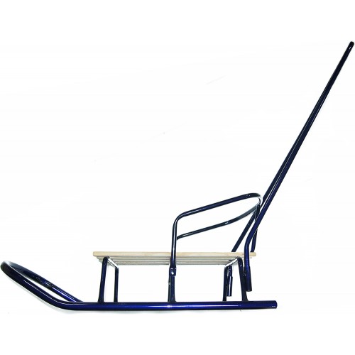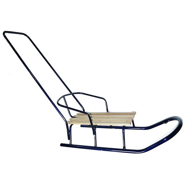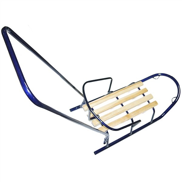 технологічних стандартів, що дозволяють створювати міцні і надійні вироби, що витримують великі навантаження (до 50 кг). В асортименті червоне і синє колірні рішення, використані матеріали сталь/дресина. Габаритні параметри санок складають 91х36х36 див. Оснащуються ручкою-штовхачем з висотою спинки 19 см. Вага конструкції 3,7 кг, тому вона оптимізована для зручного транспортування. Комфортне посадочне сидіння створено з дерев'яних рейок, товщина яких 2,5 див.