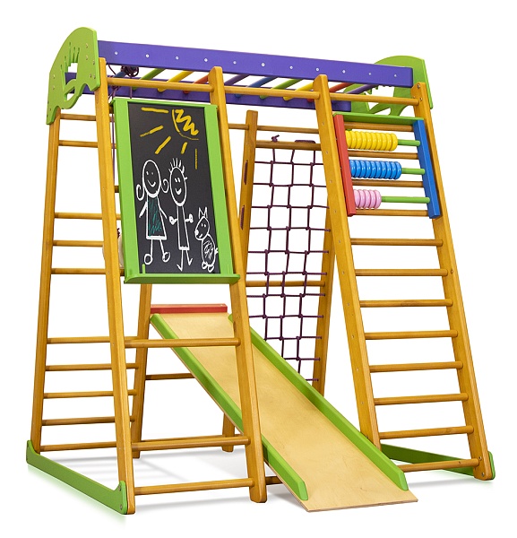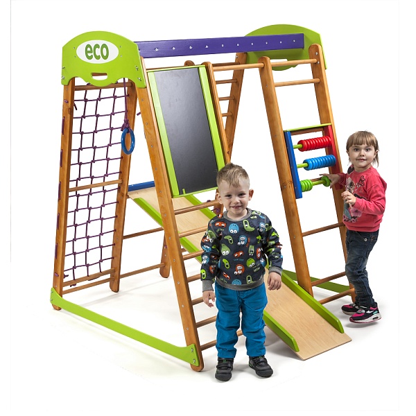 «Карапуз» стане невеликим комплексом для тренувань у квартирі. Кільця, поперечини, сходи, сітки та мотузки для лазіння розвивають у дошкільнят та дітей молодшого шкільного віку силу та спритність, тренують м'язи всього тіла. Вага конструкції лише 30 кілограмів, але вона витримає досить великих дітей.