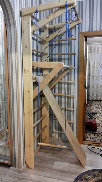 Спортивний куточок Sport 3-220 - спорткомплекс, що дозволяє проводити Вам спільні ігри та спортивні заняття разом з Вашим малюком. Ця модель є незамінним аксесуаром, необхідним для облаштування спортивного куточка в будь-якому будинку з особливо активними дітьми. Куточок дуже компактний, тому відмінно вписується в інтер'єр навіть невеликої дитячої кімнати. Конструкція оснащена мотузковими сходами, підвісними кільцями, канатом та гіркою. Одним словом, цей спортивний куточок принесе Вашій дитині масу задоволення, а також принесе їй величезну користь, зміцнюючи здоров'я та розвиваючи м'язи.
