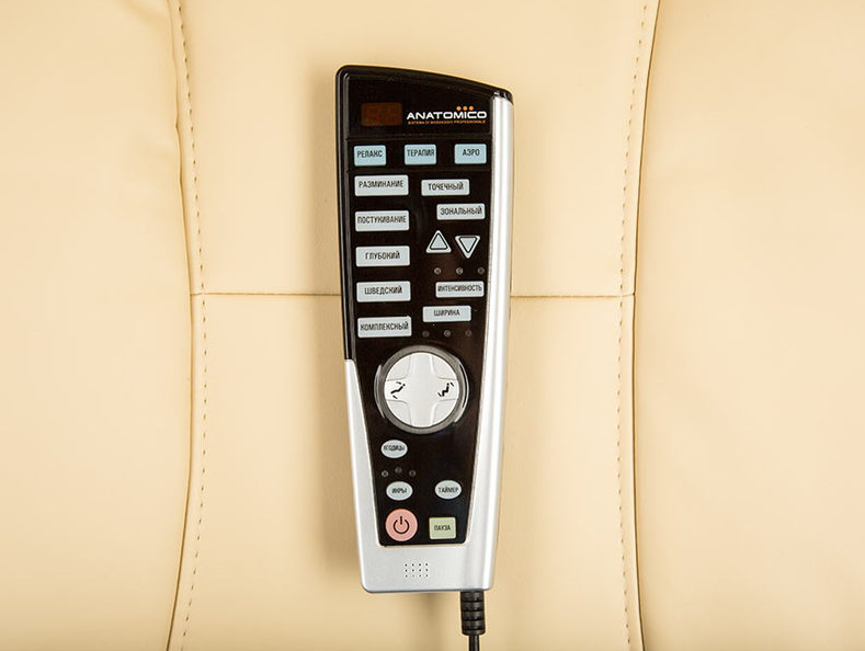 Розігріти м'язи, зняти втому в області плечей і спини, розім'яти проблемну у багатьох шийно-комірцеву область, прискорити обмінні процеси в організмі дозволить легко встановлюється крісло Marco, яке представляє тм ANATOMICO. Передбачена масажна система, що складається із спеціальних роликів, зробить різні по інтенсивності, процедури: розминка, биття, точковий масаж різноманітних зон тіла. Для поліпшення ефекту та досягнення стану повного розслаблення передбачений прогрівання спини і включення вібраційного режиму. Управління і зміна функціональних параметрів здійснюється за допомогою пульта дистанційного керування. Відхилення спинки крісла дозволить користувачам прийняти комфортне положення.