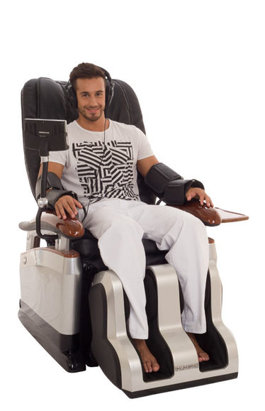 Без сумнівів, відмінним доповненням будь-якого будинку або робочого кабінету стане крісло для проведення масажних процедур YA-2500 від тм YAMAGUCHI. Запропонована модель, завдяки високій якості виконання, оздоблення з натуральної, приємною на дотик, еластичної шкіри, неодмінно впишеться в інтер'єр будь-якого приміщення. Спеціальний, що складається з 6 масажних роликів, механізм, а також 12 компресійних подушок дозволять провести більше 480 видів повністю розслаблюючих, що відновлюють, поліпшують кров'яний струм, підвищують пружність і еластичність шкіри, сеансів масажу. Для роботи з поперекової зоною передбачена функція інфрачервоної терапії. Значно пом'якшити масажні рухи в комірцевої зоні допомагає наповнена повітрям подушка. Виробники при розробці моделі JA-2500 подбали і про користувачів, чий зріст становить 185-190 см, встановивши систему "Foot sensor-2008", за рахунок якої підставка для ніг висувається вперед на 26 див. Змінити положення спинки крісла, задати необхідні функціональні параметри, прослуховувати під час сеансу улюблену музику допоможе користувачам інтуїтивно зрозумілий пульт керування, оснащений LCD дисплеєм, і вбудований MP3 плеєр.