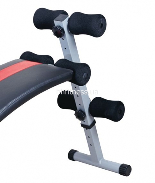 Для упорів і фіксацій передбачені великі м'які валики. Після тренування лаву можна скласти для зберігання.
