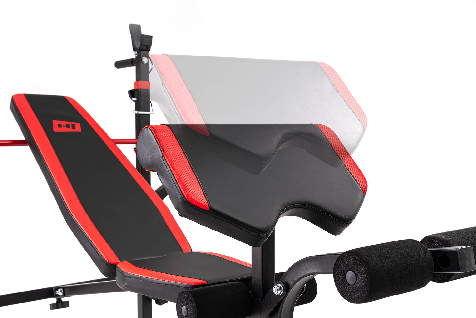 Планируете оборудовать домашний тренажерный зал? Скамья для упражнений со штангой и гантелями Hop-Sport HS-1065HB станет незаменимым оборудованием в нем. Изготовлена из высококачественных материалов по европейским стандартам качества тренировочная скамья гарантирует безопасность, комфорт и долговечность использования. Регулируемый угол наклона спинки позволяет выполнять широкий спектр разнообразных упражнений на укрепление всех основных групп мышц. Стойки помогут быстро зафиксировать штангу после окончания тренировки. Широкий ассортимент вариантов использования дополняется тягами для рук и ног.