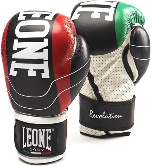 Боксерские перчатки Revolution Black от Leone – воплощение стильного дизайна и непревзойденного комфорта, в котором функциональность сочетается с эстетичностью. Тыльная сторона выполнена в чёрном цвете, внутренняя – в белом, кроме того присутствуют красные и зелёные вставки по бокам, за счет чего модель смотрится очень ярко и необычно. Изготовлены из натуральной кожи высокого качества. Благодаря чему перчатки прослужат долгое время и при этом сохранят все свои характеристики на первоначальном уровне.