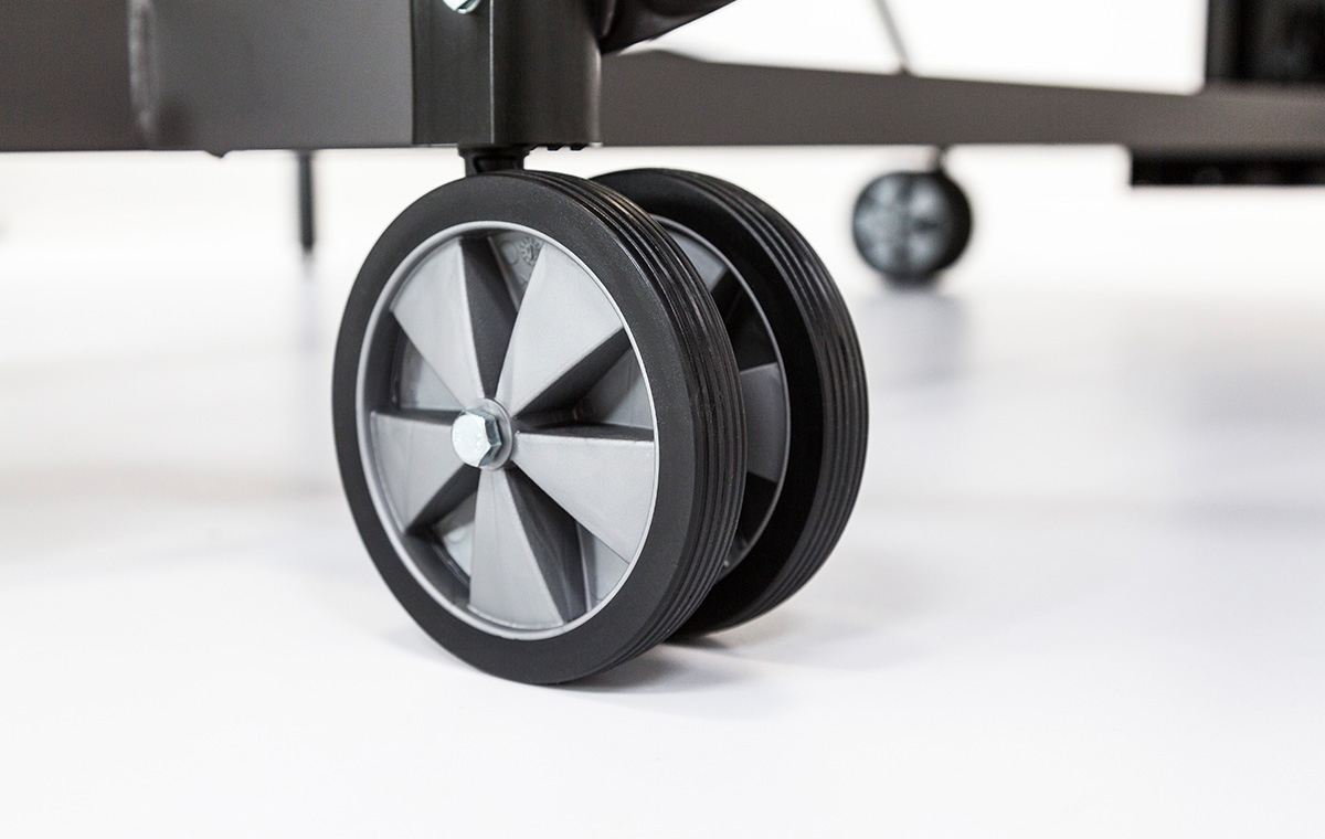 Стіл легко переміщується на 4-х здвоєних прогумованих колесах діаметром 128 мм, всі колеса маневрені.